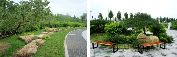 此外,工程中還用到了很多的景觀(guān)石,據(jù)高經(jīng)理介紹,這些產(chǎn)自山東的龜紋石,質(zhì)地堅(jiān)硬,表面紋路獨(dú)特,主要用于上、下層苗木之間的過(guò)渡,相鄰景觀(guān)節(jié)點(diǎn)的分隔處,以及草坪中的點(diǎn)綴等。這些看似隨意但卻自然、和諧的景石擺放,讓生活在都市里的人們感受到了山之秀美、林之繁茂,就像一首無(wú)言的詩(shī),一幅立體的畫(huà),和著自然的旋律“輕歌曼舞”。