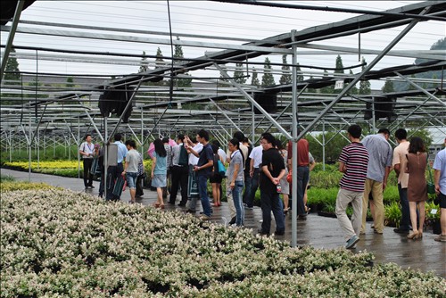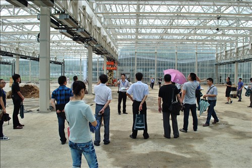 行業(yè)經(jīng)銷商代表們參觀青山湖?花園中心玻璃溫室大棚