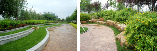 據(jù)高經(jīng)理介紹,該工程是壽光市2009年的一項重點市政工程,本著綠色、生態(tài)、自然的原則,在保留部分大樹的基礎(chǔ)上,對道路景觀進行了全新改造。工程由北至南,依次設置下沉廣場、北廣場、南廣場、方形廣場等多個景觀節(jié)點,每個節(jié)點的植物配置、地面鋪裝等都各不相同,形成一個個獨具特色的小場景;同時,又通過錯落有致的植物搭配、蜿蜒曲折的游憩步道,將整個工程貫穿起來,使得整體的景觀效果統(tǒng)一中富于變化,開闊中層次分明。