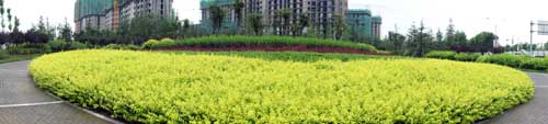 據(jù)高經(jīng)理介紹,該工程是壽光市2009年的一項(xiàng)重點(diǎn)市政工程,本著綠色、生態(tài)、自然的原則,在保留部分大樹(shù)的基礎(chǔ)上,對(duì)道路景觀(guān)進(jìn)行了全新改造。工程由北至南,依次設(shè)置下沉廣場(chǎng)、北廣場(chǎng)、南廣場(chǎng)、方形廣場(chǎng)等多個(gè)景觀(guān)節(jié)點(diǎn),每個(gè)節(jié)點(diǎn)的植物配置、地面鋪裝等都各不相同,形成一個(gè)個(gè)獨(dú)具特色的小場(chǎng)景;同時(shí),又通過(guò)錯(cuò)落有致的植物搭配、蜿蜒曲折的游憩步道,將整個(gè)工程貫穿起來(lái),使得整體的景觀(guān)效果統(tǒng)一中富于變化,開(kāi)闊中層次分明。