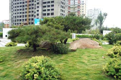 每個(gè)景觀(guān)節(jié)點(diǎn)上,植物的配置方法都是不一樣的,如在下沉廣場(chǎng),主要是以小龍柏、金葉女貞等小灌木片植成方形或弧形,間或點(diǎn)綴石楠、梅樹(shù),看起來(lái)規(guī)整、簡(jiǎn)潔;而在設(shè)計(jì)風(fēng)格為江南園林的南廣場(chǎng)上,是將貴重的造型油松單植,通過(guò)不同的組合,形成三個(gè)風(fēng)格相近的綠島,周邊種植美人蕉、玉簪、竹子,并砌起白墻,上面開(kāi)圓形拱門(mén)或圓窗,散發(fā)出詩(shī)意江南的靜謐和婉約氣息。“游憩步道是貫穿整個(gè)景觀(guān)的軸線(xiàn),為了形成曲徑通幽的景觀(guān)效果,我們將對(duì)植、孤植、叢植都多種方法結(jié)合運(yùn)用,特別是在三叉路口,多種植海棠、櫻花、杏花等,一方面,花開(kāi)的時(shí)候,綠葉間繁花點(diǎn)點(diǎn),會(huì)吸引人們不斷向前探尋更多的美景;而花落之后,茂密的枝葉又形成隱隱約約的視覺(jué)感受,前方轉(zhuǎn)過(guò)彎后風(fēng)景什么樣,又讓人很想去看看?!备呓?jīng)理笑著說(shuō)。