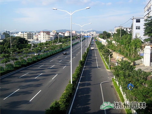 國道205深圳段改建工程景觀綠化工程G5402標(biāo)段,是深圳市龍崗區(qū)迎大運(yùn)重點(diǎn)景觀工程,位于國道205深圳段龍崗區(qū)地鐵三號線愛聯(lián)地鐵站至坪地與惠州市交界處,總綠化面積21萬㎡?!耙匀藶楸?,尊重自然”、“ 處處有綠葉、無處不飛花”等設(shè)計理念貫穿于工程始終,整條中央綠化帶位于高架橋下,生長茂盛的各類植物形成一條色彩繽紛的彩帶擁簇著高架橋段,使整體橋段與綠化景觀有機(jī)融合。整條道路的景觀,不僅體顯出一個濱海大都市獨(dú)有的景觀特色,更彰顯這個城市的生機(jī)活力與熱情奔放。