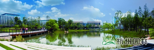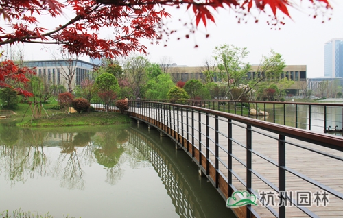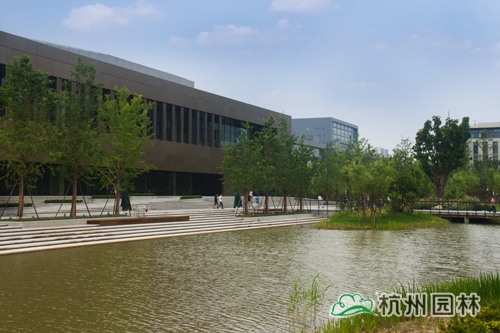 從濱江區(qū)江虹路的西入口處走進(jìn)華為杭州生產(chǎn)基地,首先映入眼簾的是廣場(chǎng)上大小不一的花池,一棵棵銀杏、香樟、桂花生長(zhǎng)得郁郁蔥蔥,昭示著無(wú)限的生機(jī)與活力。腳下的鋪裝,一邊是菠蘿格防腐木,一邊是規(guī)則的花崗巖,一“軟”一“硬”,相映成趣,蜿蜒延伸,直通前方的人工湖。清澈的湖水,在夏日陽(yáng)光的照耀下,波光粼粼,偶爾一陣風(fēng)來(lái),一圈圈的漣漪蕩漾,整個(gè)湖面都動(dòng)了起來(lái),讓人忍不住加快腳步,去一睹前方的美景。這就是華為杭州二期生產(chǎn)基地景觀綠化分包工程一標(biāo)段的現(xiàn)場(chǎng)景觀,該工程由杭州市園林綠化股份有限公司承建,曾榮獲2013年度浙江省園林綠化工程安全文明施工標(biāo)化工地。