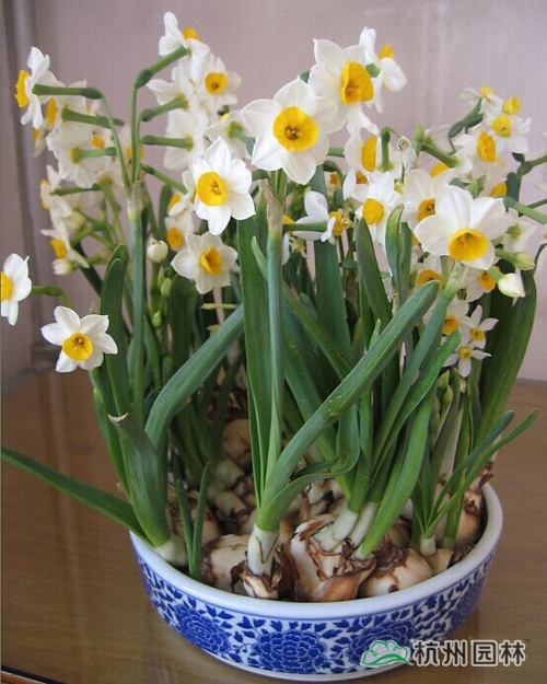 水仙:水仙是冬季常見的花卉之一,通常種植的水仙是指中國(guó)水仙,其姿態(tài)玲瓏可人,清香撲鼻,在寒冬臘月可開花;而洋水仙一般在春季開花,色彩艷麗,形態(tài)壯美,但大多缺乏香味,兩者各具特色。但是,無(wú)論中國(guó)水仙還是洋水仙,種球的優(yōu)劣決定著花的質(zhì)量,因此,在選購(gòu)種球時(shí)要挑個(gè)大、硬實(shí)、側(cè)芽少的種球。中國(guó)水仙有土培和水培兩種種植方法,水培法即將催芽處理后的水仙種球直立放入淺盆中,加水淹沒鱗莖三分之一為宜,盆中以玻璃球、鵝卵石等固定。洋水仙不宜用作水培且喜冷涼環(huán)境,過(guò)于溫暖會(huì)導(dǎo)致葉片徒長(zhǎng),較喜水,花期時(shí)適量增加水分可延長(zhǎng)花期。