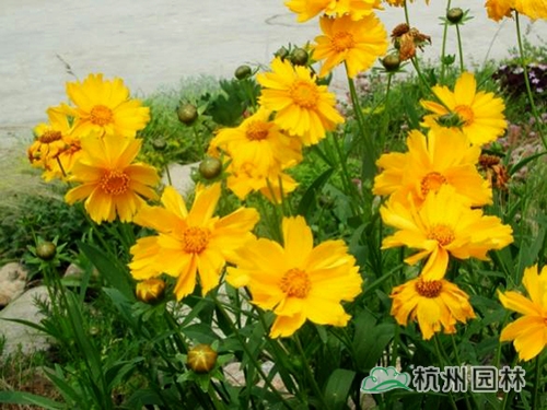金雞菊,葉片多對生,稀互生、全緣、淺裂或切裂?;▎紊蚴鑸A錐花序,總苞兩列,每列3枚,基部合生。舌狀花1列,寬舌狀,呈黃、棕或粉色。管狀花黃色至褐色。既耐寒又耐干旱,pH 5-7都可以種植,很容易栽培。也常用于綠化栽培。特點是繁殖力極強,有時成了半野化種。除了代表性的黃色外,還有重瓣等品種。