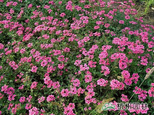 美女櫻,其姿態(tài)優(yōu)美,花色豐富,色彩艷麗,盛開時如花海一樣,令人流連忘返。美人櫻株叢矮密,花繁色艷,開花部分呈傘房狀,花色有白、紅、藍、雪青、粉紅等,花期為5-11月。喜陽光、不耐陰,較耐寒、耐蔭差、不耐旱?;ㄆ诳蓢娏姿岫溻?,促進花開放。