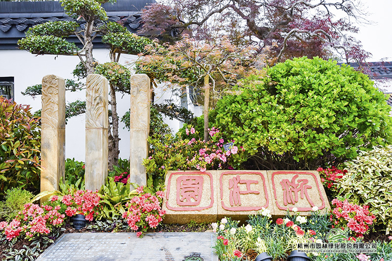 位于浙江園主入口西側(cè)的景觀小品“浙江印”,提煉自石鼓篆書第一人、西泠印社首任社長吳昌碩先生的書法作品,三方極具浙派篆刻風格的印章上,“浙江園”三個字,干凈、利落,古樸、大氣。這幅美景的背后,是深化設(shè)計團隊數(shù)次往返西泠印社,從無數(shù)的篆刻名家作品中挑選、比對,決定采用最能代表浙江篆刻藝術(shù)的吳昌碩先生字體,從中找出“浙”、“江”、“園”三個字,在設(shè)計圖中反復(fù)比對,調(diào)整位置、大小,最終確定下來。