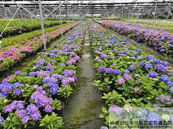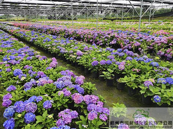 據悉,在畫境種業(yè)徑山基地,共有七八十個繡球品種,規(guī)格從1加侖到5加侖,能夠滿足家庭園藝和工程用苗的多種需求。通過近幾年的生產和繁育,徑山基地不斷篩選優(yōu)良的繡球品種,目前,基地里的這些品種表現都比較好,比如紅色系的搖擺樂、漢堡、花神,花色紅艷,花朵碩大,在一眾繡球中表現非常搶眼;花色豐富多變、宛如一顆顆璀璨寶石的藍寶石和藍色媽媽;花朵宛如蝴蝶翩躚、花色充滿夢幻感的佳澄;花朵密集、猶如一大捧五顏六色爆米花的愛莎;開花早、花期長、花色漸變的藍色海洋;花開時,宛如一只只白色小鳥在枝頭紛飛的泉鳥;花團錦簇、花期超長的無盡夏……可以說,每一種繡球的花色、花形都各不相同,極具特色,充滿了夏日的浪漫情懷。
