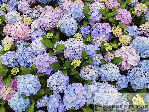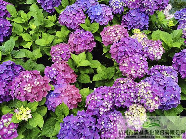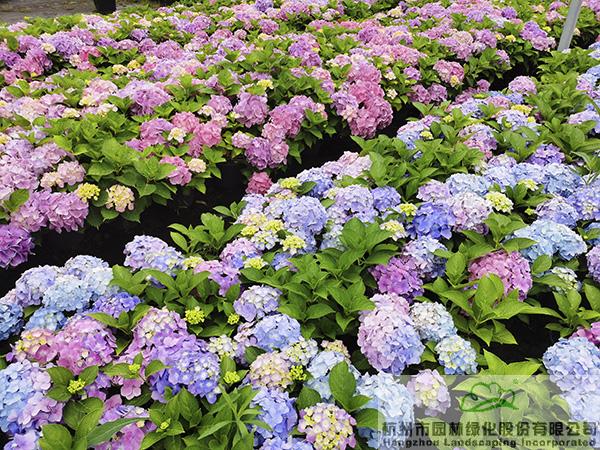 五、六月份,走進杭州畫境種業(yè)有限公司徑山基地,依然是一片忙碌的景象,工人們正在忙著苗圃的管理,客戶們正在忙著看苗選苗。在滿眼的綠色中,獨有一片姹紫嫣紅瞬間吸引了人的目光。走近一看,原來是盛開的繡球。琳瑯滿目的品種,繽紛絢麗的色彩,在夏日的陽光下恣意綻放,開出一片繁花似錦,開出一場花海盛宴。話不多說,先看一波美圖吧。