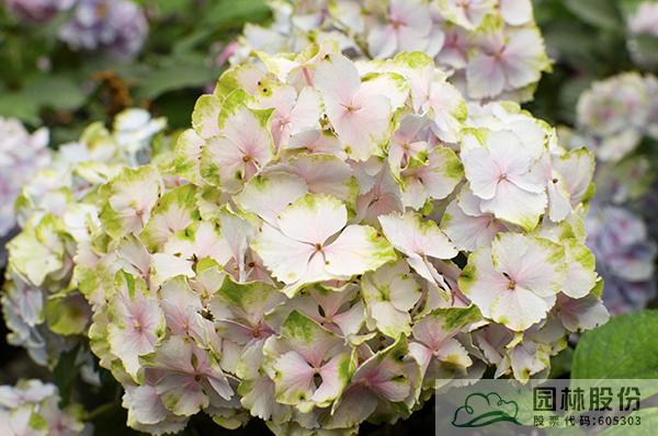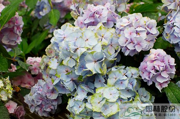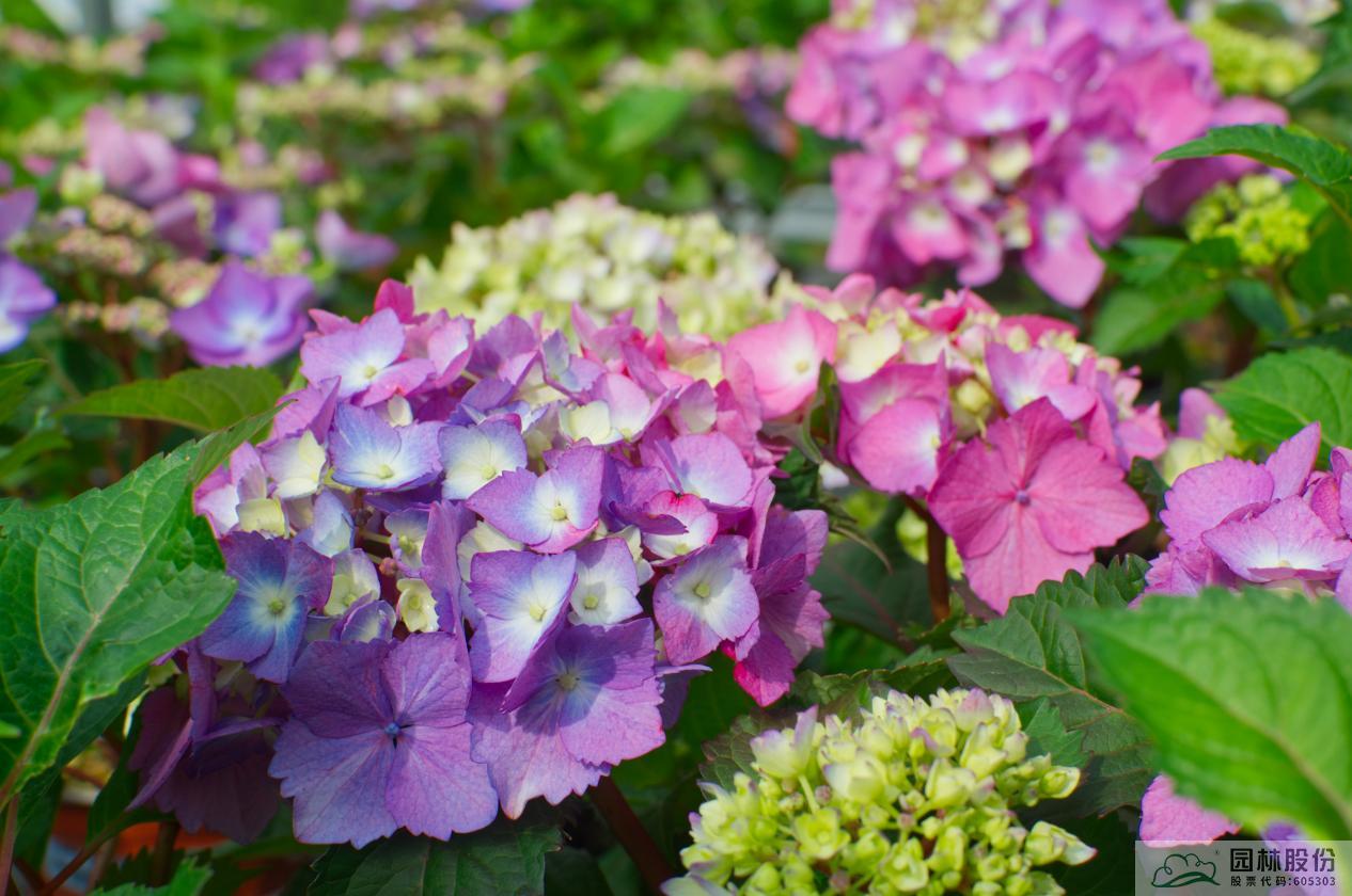 繡球品種繁多,花色豐富,在杭州市園林綠化股份有限公司的研發(fā)基地里,企業(yè)自主培育的青山系列繡球,已有20個(gè)品種。該系列繡球品種具有植物強(qiáng)健、直立性好、抗逆性強(qiáng)、花期早、開花時(shí)間長(zhǎng)、花色艷麗豐富等特性。