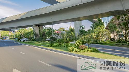 項目綠化施工主要包括道路分車帶、道路兩側(cè)帶狀綠地、節(jié)點(diǎn)綠地、高架橋垂直綠化等區(qū)塊。每個區(qū)塊根據(jù)其功能與特色,通過不同植物配置,營造豐富景觀。
