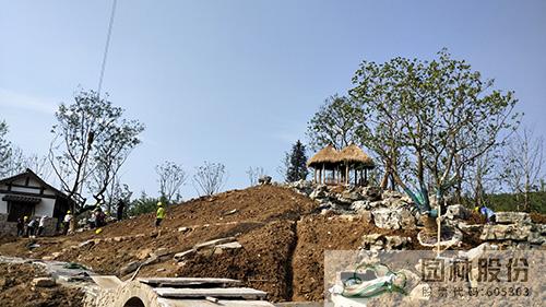 自今年四月份開工以來,杭州園的各項工作進展有序。截止目前,主體建筑、水系跌瀑、溪流假山等基本完工,大部分鋪裝已經(jīng)完成,展園景觀風貌初見雛形。接下來主要進行喬木和大灌木的種植工作。正值夏季高溫時節(jié),為提高樹木的成活率,施工中多措并舉,提前將挑好的大樹進行修剪、斷根、噴灑營養(yǎng)液;采用通氣透水的材料包裹土球,進行容器假植;制定精細澆水養(yǎng)護方案等,使植物清涼度夏,早日綻放風華。