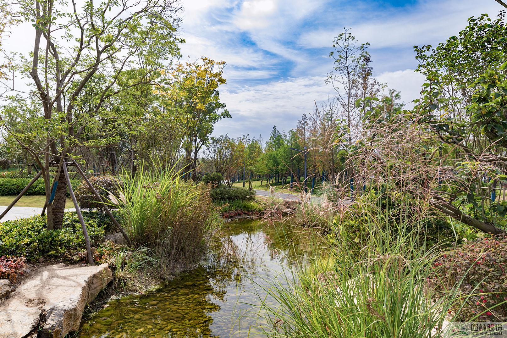 運河灣公園是一個以海綿城市理念打造的景觀公園,從旱溪、濕塘等形式豐富的海綿設(shè)施,到各類透水鋪裝材料的應(yīng)用,海綿城市理念貫穿于公園建設(shè)的各個環(huán)節(jié)。