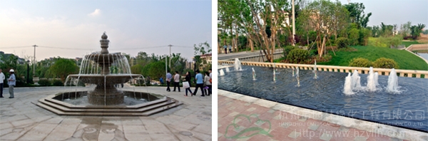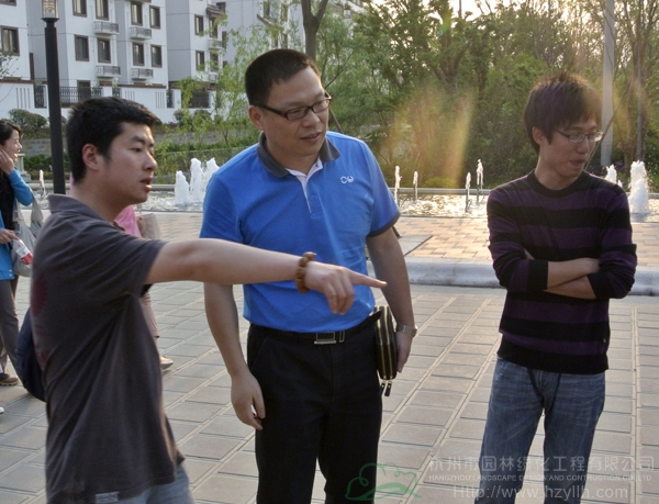 位于南京徐莊工業(yè)園內(nèi)的紫金東郡居住區(qū)景觀綠化工程剛剛俊工,項目經(jīng)理場升超帶領大家參觀了現(xiàn)場,并針對工程中的園路鋪裝、植物配置、水景設置等進行了講解。為了突出江南水鄉(xiāng)的特色,工程中的水景元素運用比較多,從大門口的水池、噴泉雕塑,到不同風格的小型水景,使小區(qū)的整體景觀變得更加生動,更為即將到來的炎炎夏日增添了幾許清涼。