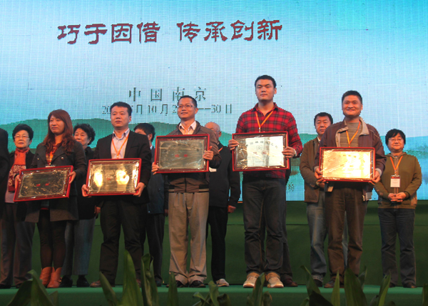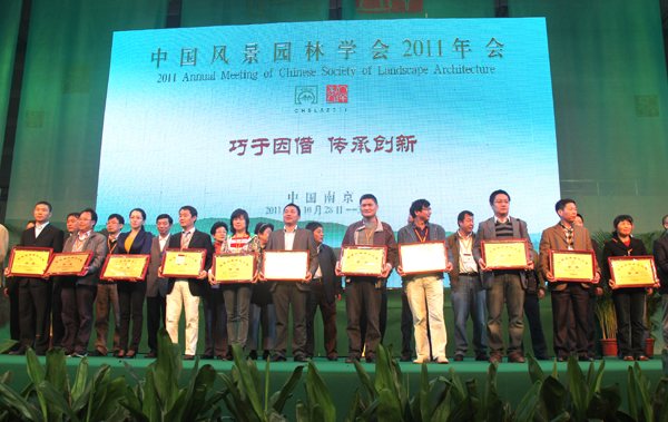 30日下午閉幕式的一個重要環(huán)節(jié)是為2011年度中國風景園林學會優(yōu)秀園林工程獎獲獎單位頒獎。由杭州市園林綠化工程有限公司承建的“昆明市市級黨政機關(guān)辦公用房搬遷建設(shè)項目區(qū)內(nèi)景觀綠化工程(第三標段)”和“吳江市震澤鎮(zhèn)寶塔街西入口沿河、沿街北側(cè)、后花園仿古建筑工程”分別榮獲“中國風景園林學會優(yōu)秀園林綠化工程獎金獎”和“中國風景園林學會優(yōu)秀園林古建工程獎銀獎”。高總代表公司上臺領(lǐng)取了獎牌。