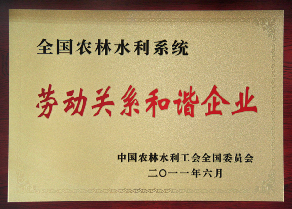 公司榮獲“全國農林水利系統(tǒng)勞動關系和諧企業(yè)”稱號